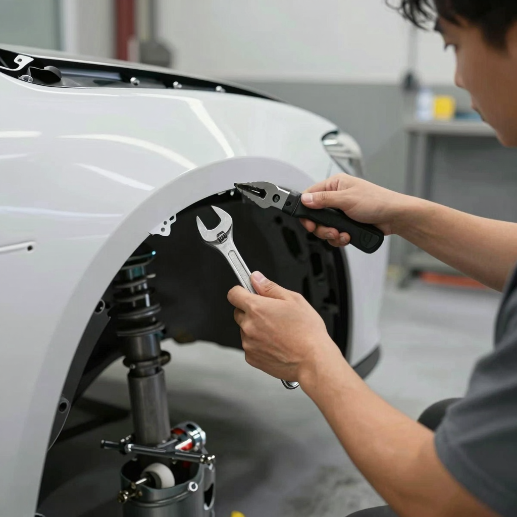 • Body Repair Tools: Dent puller, sanding block, and body filler.